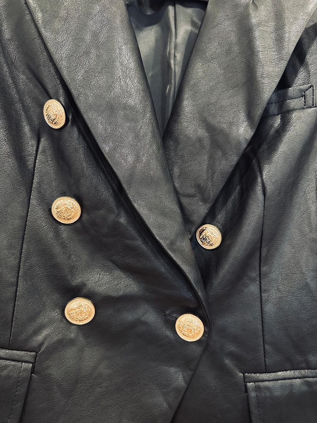 BLAZER POLIPIEL NEGRA CON BOTONES RELIEVE DORADOS