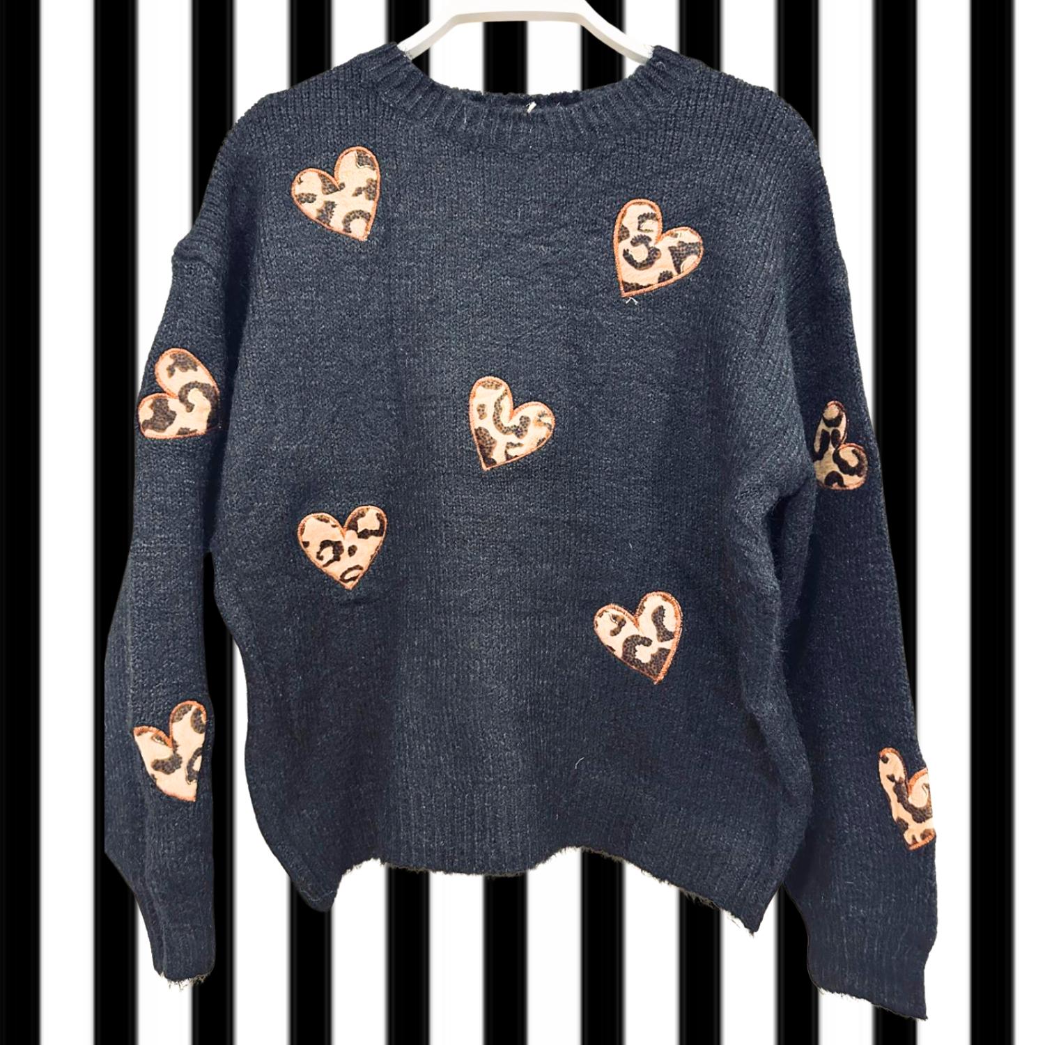 JERSEY NEGRO CORAZONES ANIMAL PRINT